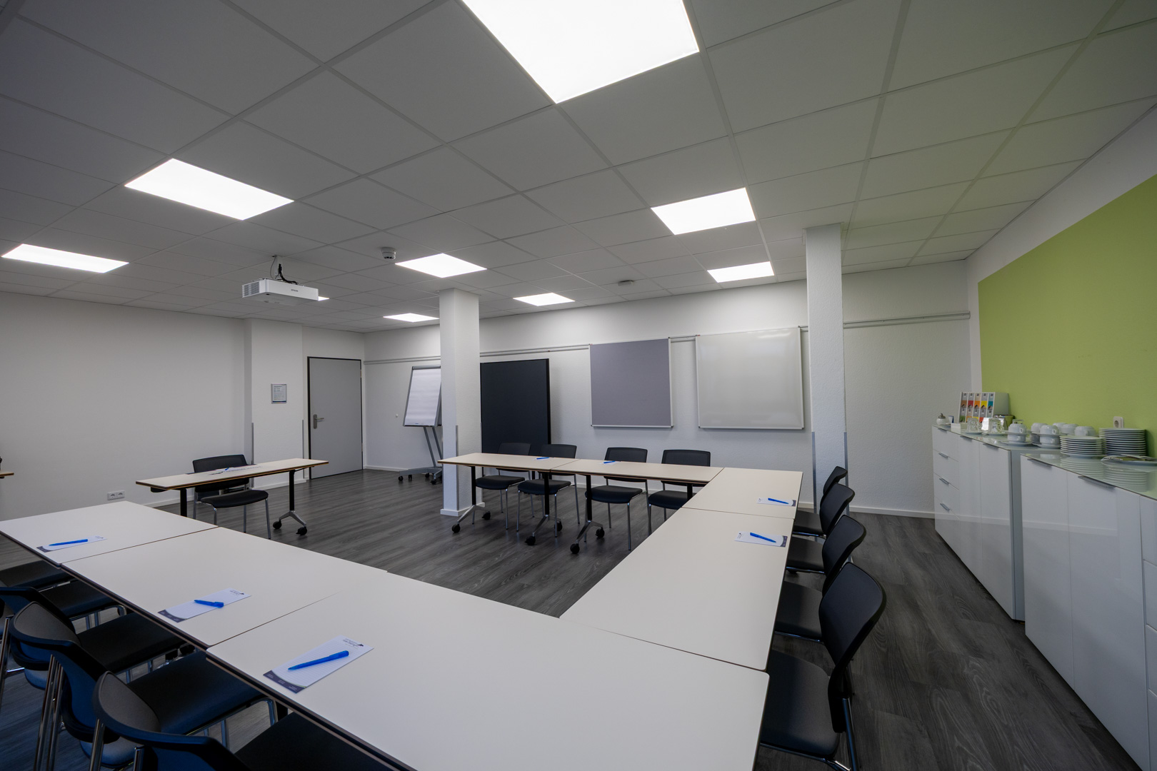 – ausreichendes Moderationsmaterial mit verschiedenen Moderationskarten, Neuland Flipchart-Stiften, Magneten und vieles mehr.