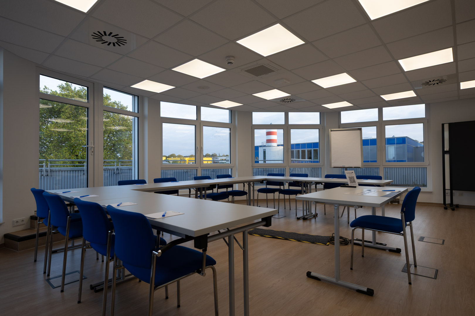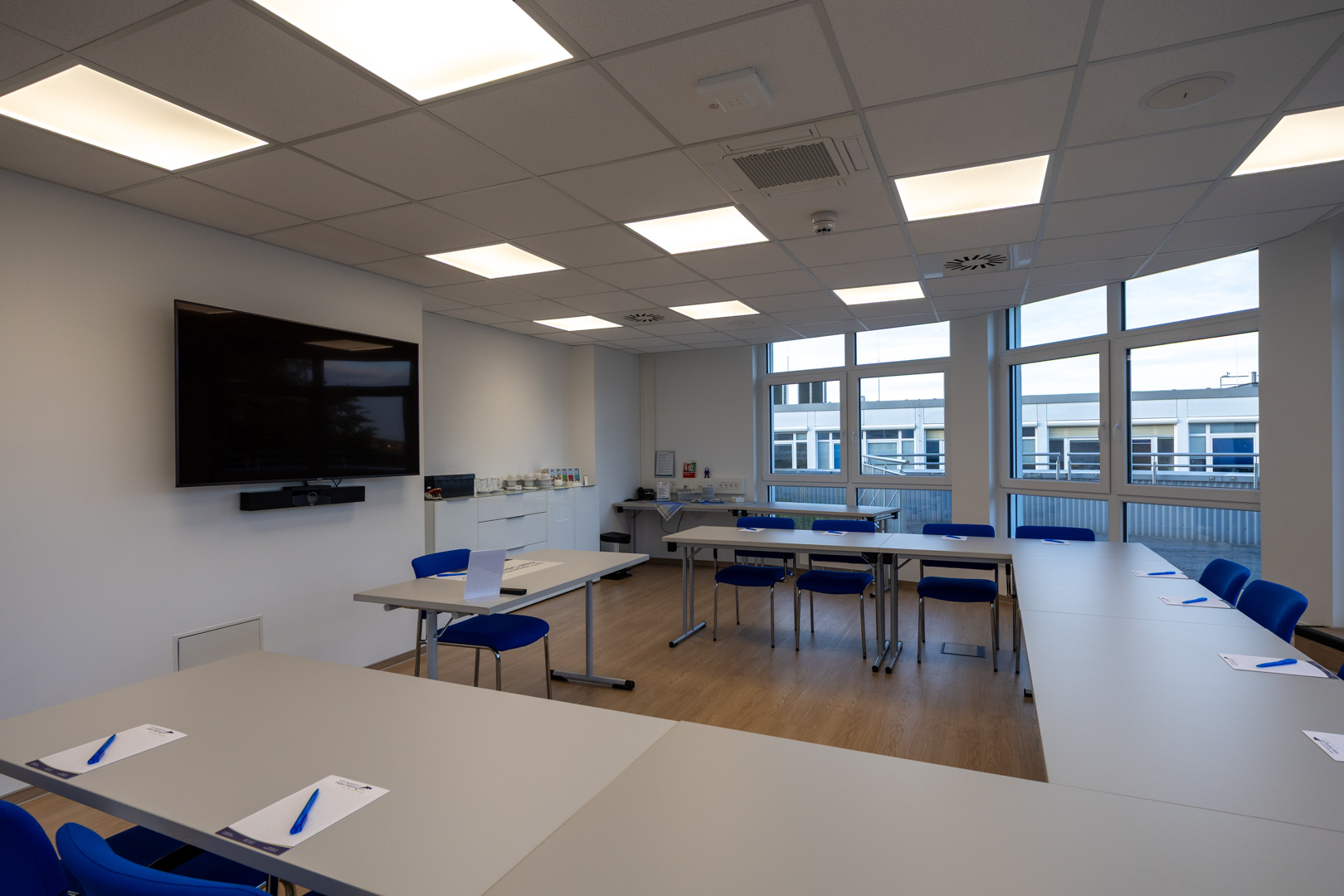 Der Raum befindet sich in der ersten Etage, er ist mit dem Aufzug oder Treppe zu erreichen.