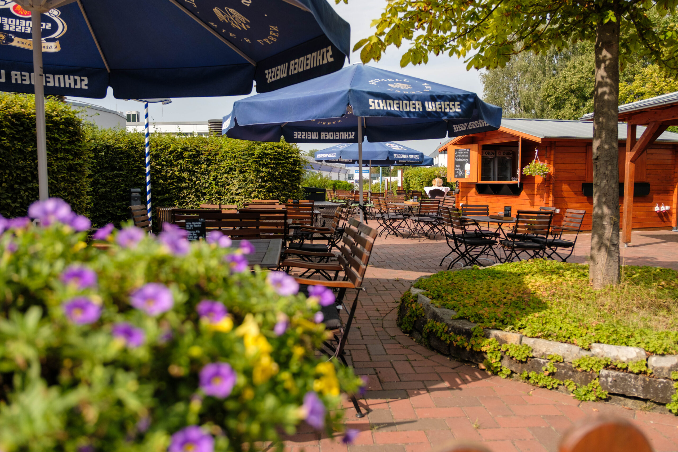 Gruppenarbeiten können in Gruppenräumen und auch auf den zur Verfügung stehenden Sitzflächen im Hotelgarten durchgeführt werden.